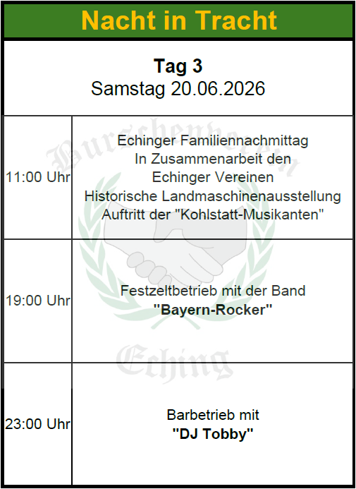 SAMSTAG 20.06.2026 „FAMILIENTAG“ & „NACHT IN TRACHT“